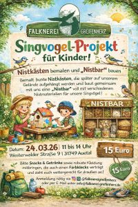 Die Aktion findet bei der Falknerei Greifenherz statt und richtet sich an Kinder ab 6 Jahren, die Lust haben, kreativ zu werden und gleichzeitig etwas für die Natur zu tun.